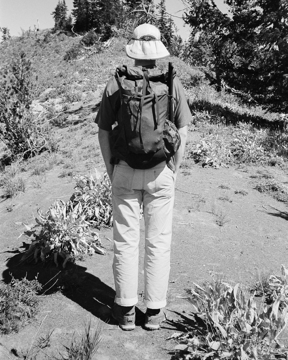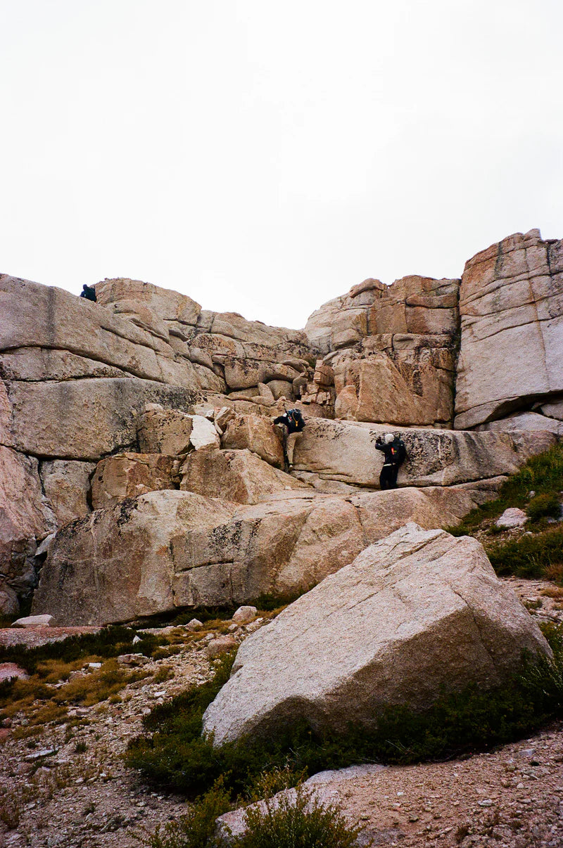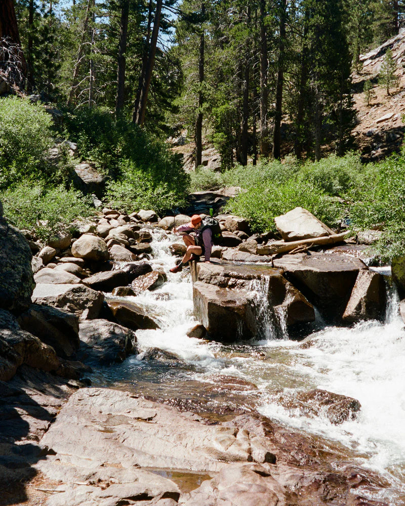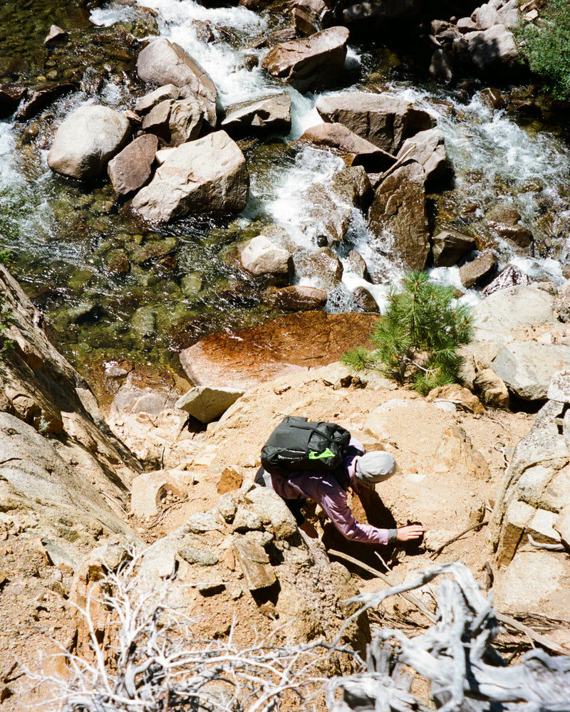 bear cans can be packed on top of the pack under the g-hook when the pack isn't fully packed out. we like to carry them empty or w/ trash for a more balanced carry 防熊罐收納:當背包沒有完全裝滿時,防熊罐可以置於背包上方並固定於 G 鉤下。我們喜歡將防熊罐空置或裝入垃圾,這樣能獲得更平衡的攜行體驗。 BV500 或更小的防熊罐可以垂直放入背包內。